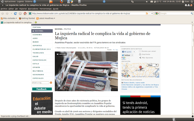 | Nota del Diario «El Observador» en su portal de internet. |