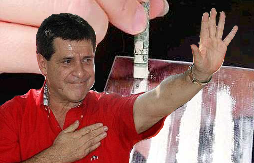 Hace poco más de un año que un gobierno elegido democráticamente fue derrocado luego del montaje de una provocación ejecutado por las fuerzas de la ultraderecha tradicional, lo que llevó a un nuevo montaje de transición “democrática” con fuerte represión social y política mediante que ha llevado pasaje del tristemente celebre Franco y ahora, ahora a Cartes que ha sido condecorado como nuevo presidente con un saludo que recuerda el viejo saludo nazi.