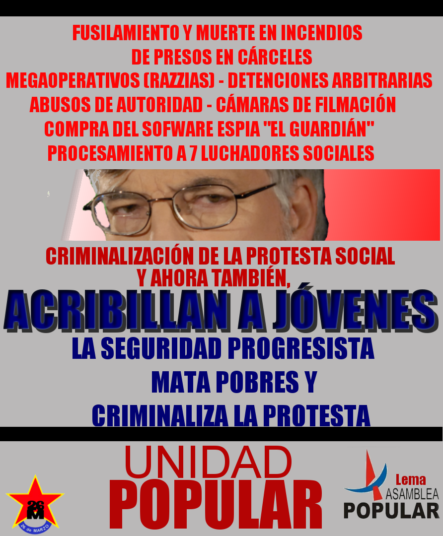 Afuera disparan contra el pueblo haitiano, violan jóvenes, profanan iglesias en el Congo. Aquí reprimen en el Cantegril, matan dentro de la Cárcel, y ahora asesinan un niño de 16 años en un barrio humilde de trabajadores. ¿Qué defiende el Frente Amplio con esta política represiva y reaccionaria?