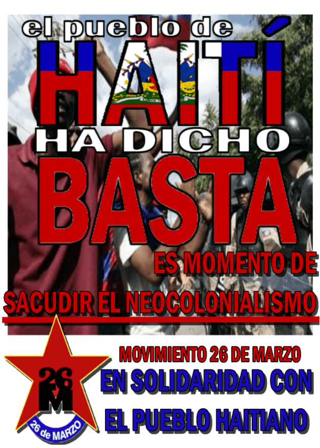 Otro de los temas que mereció nuevamente un comentario del Diputado del Movimiento 26 de Marzo Unidad Popular en la primera intervención de la semana en CX 36 , fue la situación política de Haití.