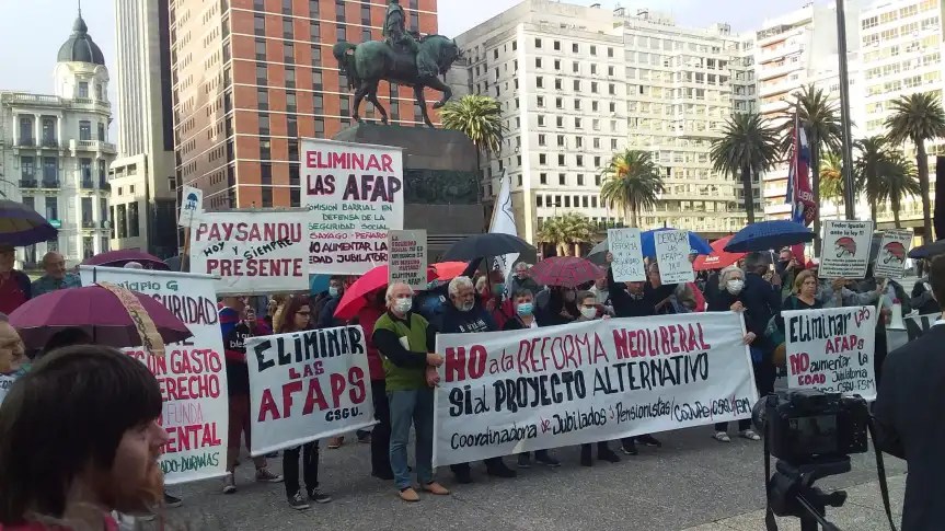 Ante la decisión de ATSS y el MONDESS de lanzar el plebiscito constitucional para eliminar las AFAP, tal como lo han anunciado, es necesario generar el mayor apoyo posible del movimiento obrero y popular para lograr el triunfo del mismo. La propuesta del MONDESS es incluir en la Constitución artículos que impidan el aumento de la edad de retiro, el recorte de las prestaciones y jubilaciones del BPS, que aumente las jubilaciones y pensiones, que asegure ajustes trimestrales, que realmente de solución al trabajo no pago de la mujer trabajadora, que devuelva el aguinaldo a los jubilados, que haga pagar al gran capital y que elimine las AFAP definitivamente.